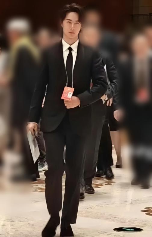 巴黎高定时装周上的卷毛被捋直,一身妥帖而庄重的西装衬得他身姿笔挺,长身玉立,有体制内那股味儿了。